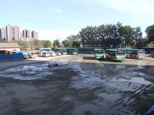 “一腳深、一腳淺,下雨天屋內(nèi)也打傘。”這就是對2014年前的藍天樓車場的真實寫照。院內(nèi)的三間舊營房就是路隊干部職工的家,隊管辦公室、職工休息室、站員調(diào)度室、食堂統(tǒng)統(tǒng)擠在這狹小的三間房內(nèi),幾輛老舊報廢的公交車,成了隊里的臨時庫房。幾塊板搭起來的小棚兒,變成了大家的廁所。冬天的時候,西北風帶著陣陣寒意,卷著路面的塵土,刮的大家睜不開眼,車開起來時,就像戰(zhàn)爭大片一樣,煙塵四起。夏天的時候,大家每天最關(guān)注的就是天氣預報,他們說:“夏天再熱也不怕,就怕老天把雨下。”為什么這么說?原因是車場沒有完善的排水設施,一到下雨天就積水,藍天樓車場立刻變成藍天湖車場。站點淹了、地溝淹了、廁所淹了……干部職工雨聲就是命令,大家動手齊上陣,有的拿笤帚,有的拿盆,利用手里能用到的工具,抓緊一切時間把水排干,為的是讓乘客的腳下不再泥濘,為的是讓我們的公交車準時駛出車場。