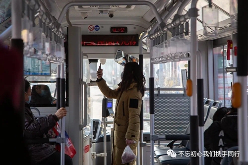 凌晨5:20,等待發(fā)車(chē)的我迎來(lái)幾張陌生面孔,莫不是新入職的駕駛員?原來(lái)他們暫時(shí)不能承擔(dān)駕駛員的工作,但是他們加入了防控的隊(duì)伍。為準(zhǔn)備上崗的駕駛員測(cè)量體溫,給運(yùn)營(yíng)車(chē)輛在出車(chē)前、收車(chē)后集中消殺通風(fēng),針對(duì)乘客易接觸的投幣箱、扶手、座椅等部位重點(diǎn)消毒,嚴(yán)格執(zhí)行一趟一通風(fēng)、一趟一消殺。老搭檔告訴我,只有接受消毒噴灑的洗禮,才能躋身抗擊疫情的行列。“來(lái)吧,我身經(jīng)百戰(zhàn),怎會(huì)退縮!”一切準(zhǔn)備完畢,出發(fā)。